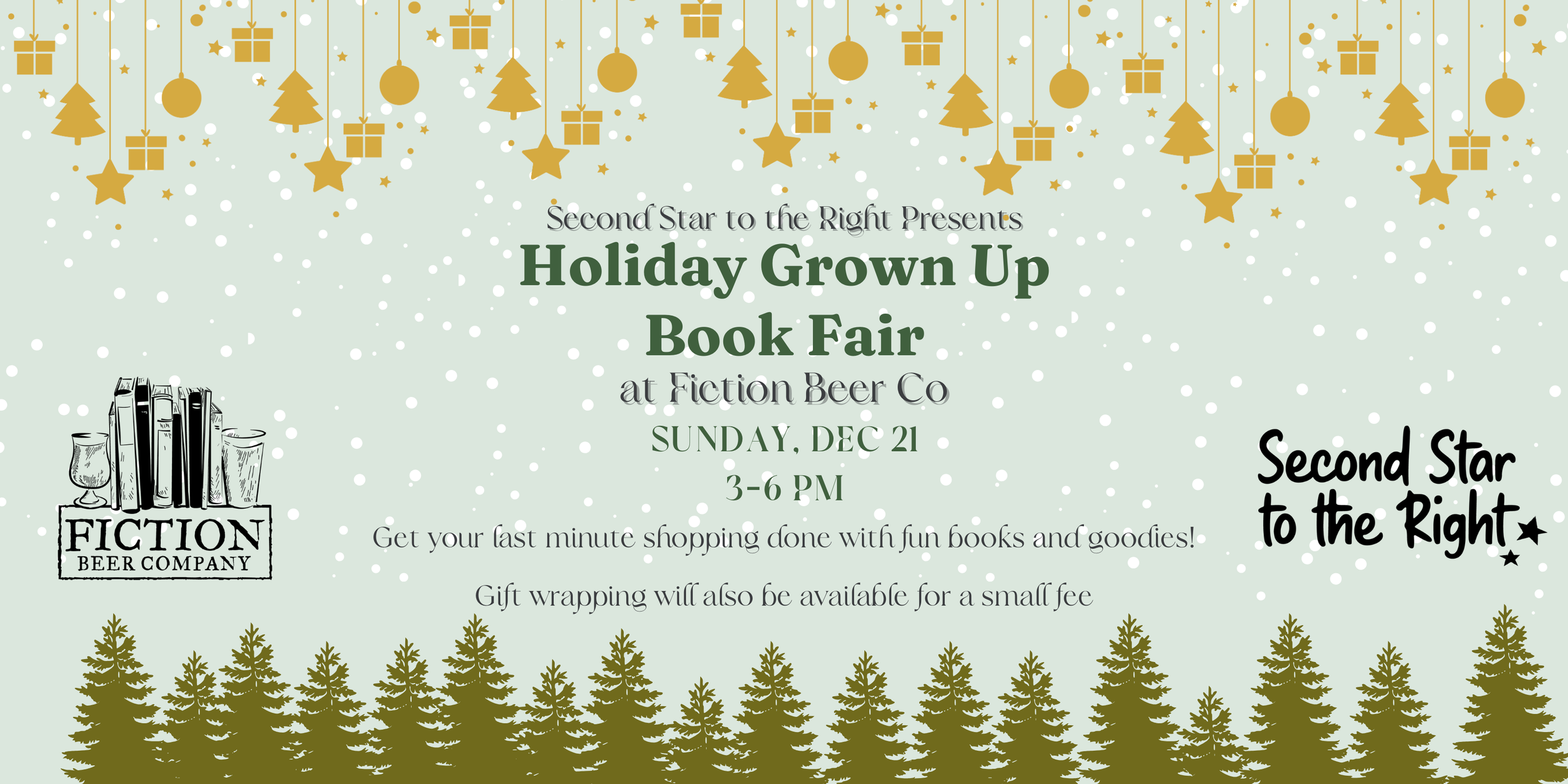 It's a holiday grown up book fair! This is the perfect time to get those last minute gifts for those on your list (or you!). You can also relax and enjoy a fun environment and drink to calm during the holiday season. We will have gift wrapping available for a small fee at the event to make your gifts ready to go!