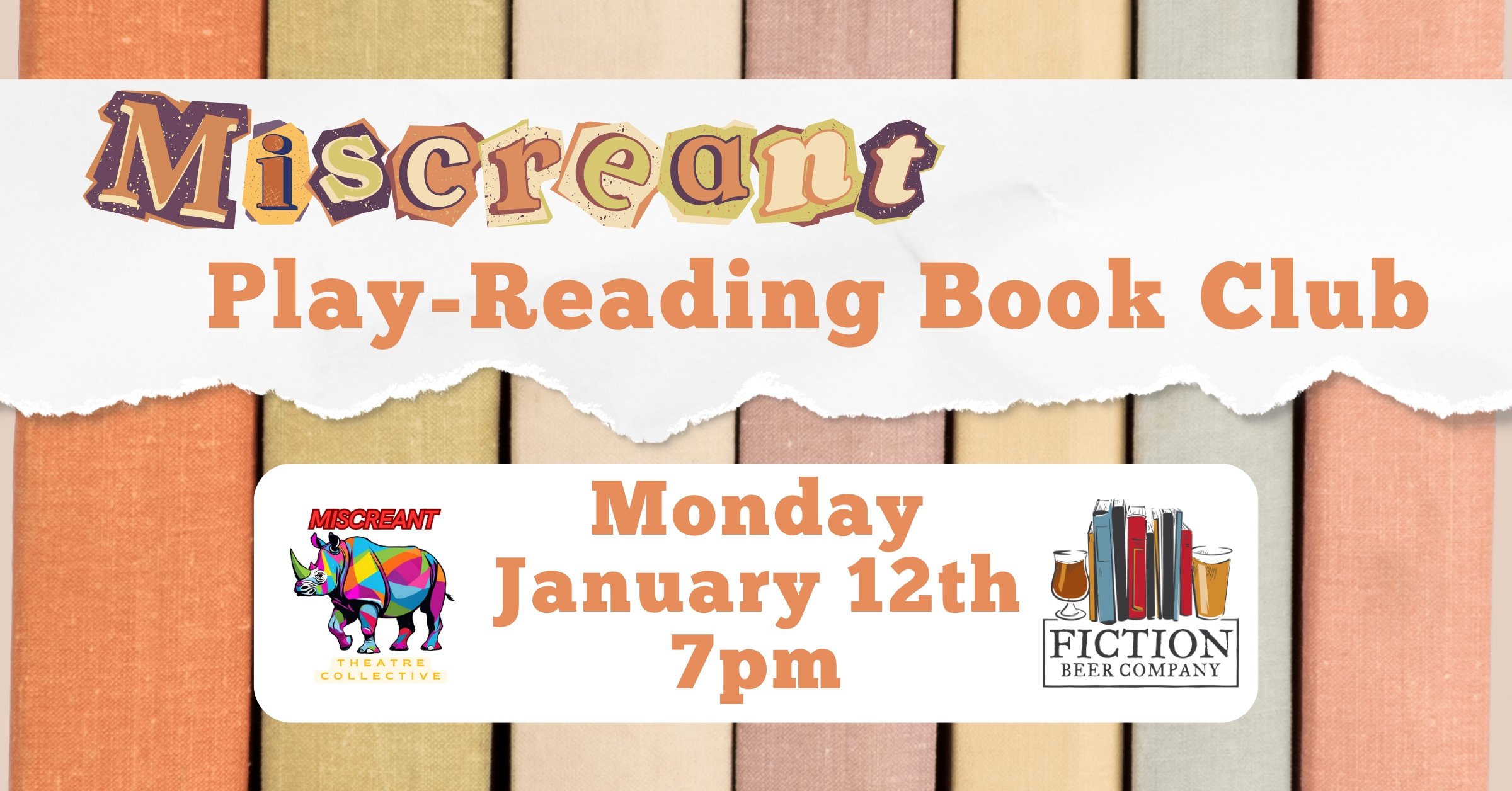 Miscreant Book Club has a new monthly lair! Join us every 2nd Monday at 7pm at Fiction Beer Company for live, out-loud play readings — scripts in hand, big choices encouraged, bad accents celebrated.
